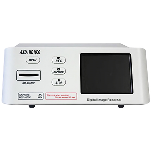 The Axia HD1000 is an HD digital image capture device designed to save digital video and still images from a video source. With the AXIA HD1000, you can effortlessly capture high-quality videos and images, which can then be easily transferred to any computer or a secure network via a USB flash drive. It works with C-arms, Endoscopic Cameras, Ultrasounds, and most video imaging devices with video output. The internal 500GB HDD stores around 80 hours of HD video. (Note: One hour of video takes about 5.5GB).