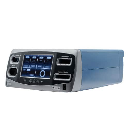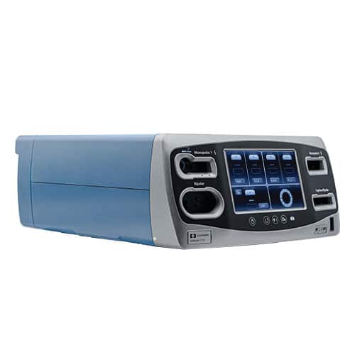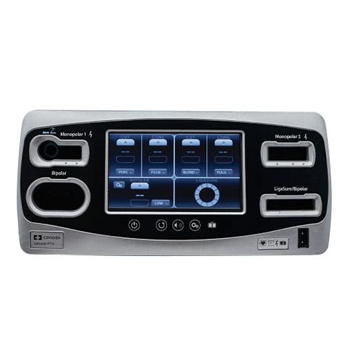The Medtronic Covidien Valleylab FT10 energy platform delivers precise energy with enhanced performance, resulting in faster sealing and cutting times. Its built-in intelligent TissueFect technology improves the speed and consistency of handheld devices by reading tissue composition in real-time, evaluating device performance 434,000 times per second, and monitoring tissue impedance to ensure effective and efficient energy delivery. The FT10 provides RF energy for monopolar and bipolar surgical applications, tissue fusion, and vessel sealing, featuring a touchscreen interface divided into four sections for easy user input and monitoring. Additionally, the energy platform automatically detects coded handsets and adjusts configurations accordingly. Medtronic Valleylab offers various electrosurgical units, including the Medtronic Covidien Valleylab Force Triad.