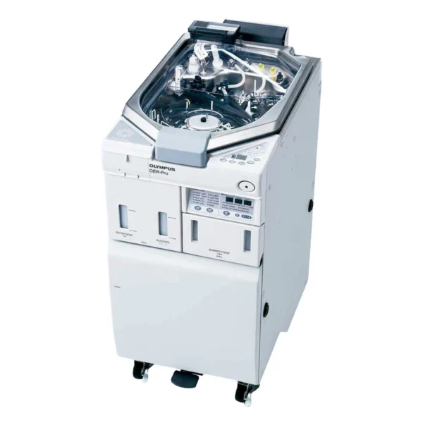 The Olympus OER-Pro endoscope reprocessor is designed to support automated cleaning and high-level disinfection of heat-sensitive flexible endoscopes and their accessories. Built to promote consistent reprocessing results, the system combines automated cycles with the ability to perform modified manual cleaning prior to full disinfection. Its intuitive interface allows users to easily select, monitor, and manage reprocessing cycles, helping streamline workflow in endoscopy and sterile processing departments. The OER-Pro is engineered to work with validated detergents and high-level disinfectants, supporting compatibility and effective performance across Olympus endoscopes. With a focus on safety, reliability, and efficiency, the system helps facilities maintain proper reprocessing protocols while reducing manual handling.