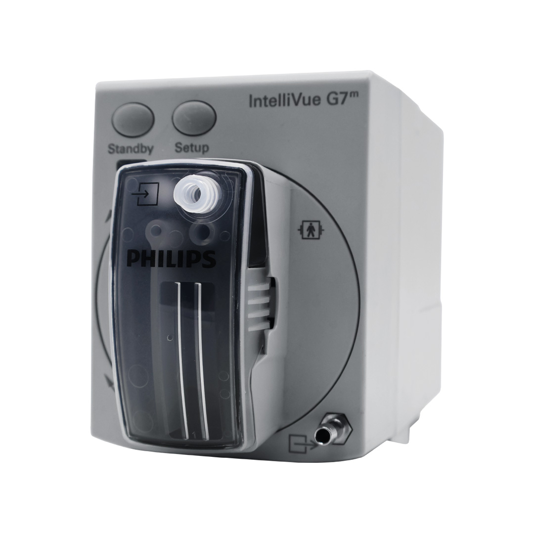 The Philips IntelliVue G7 Gas Module is an advanced gas monitoring system designed to provide comprehensive and accurate analysis of respiratory gases during anesthesia and intensive care. It integrates seamlessly with Philips IntelliVue patient monitors to deliver real-time gas measurements and enhance patient safety.