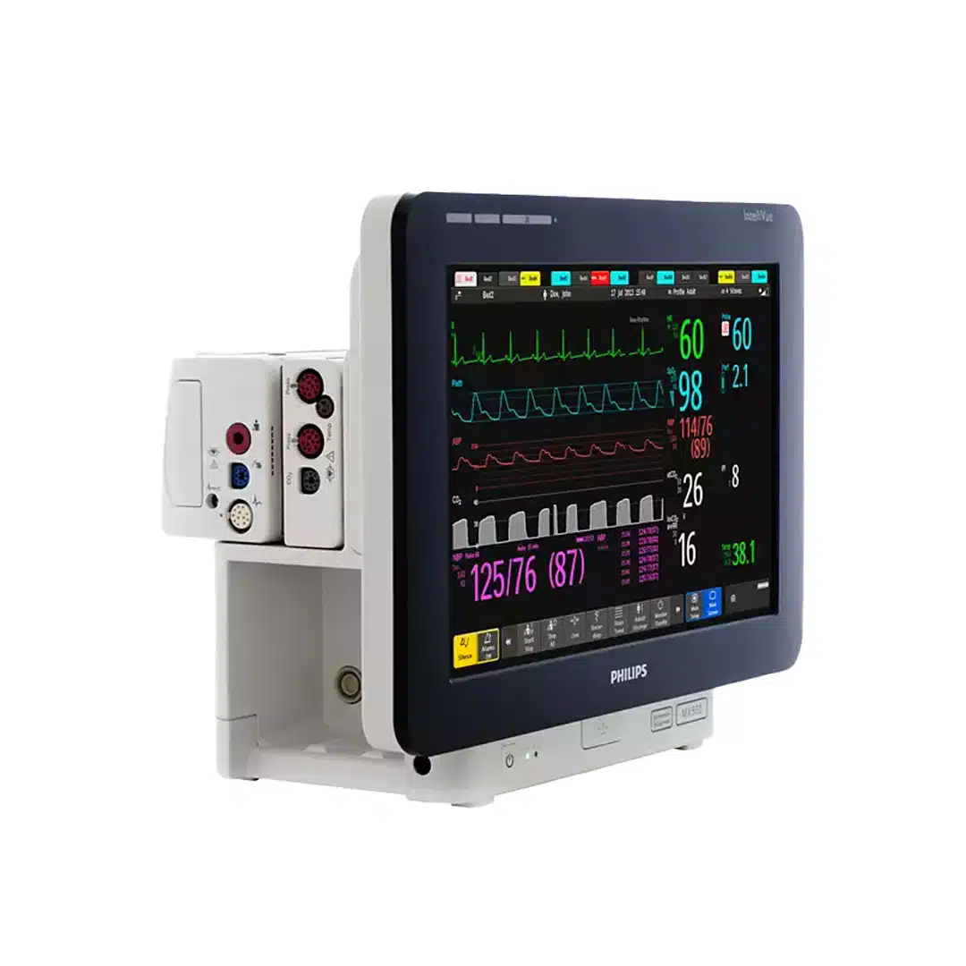 The Philips IntelliVue MX550 is a comprehensive patient monitor that can also monitor vital signs. The Philips MX550 comes with a 15-inch touchscreen interface, making it easy to view and make parameter changes for each patient. The display screen can easily be adjusted, which allows for flexible displaying of different measurement information. The Patient monitor is a part of the Philips Multi-Measurement Module (MMS) system. Offers multiple plug-in modules that can measure a variety of parameters. Some of these modules include; anesthesia, Intensive, Cardiac, Neonatal, and general care. Philips offers a variety of patient monitors; another in the MX series is the Philips IntelliVue MX700.