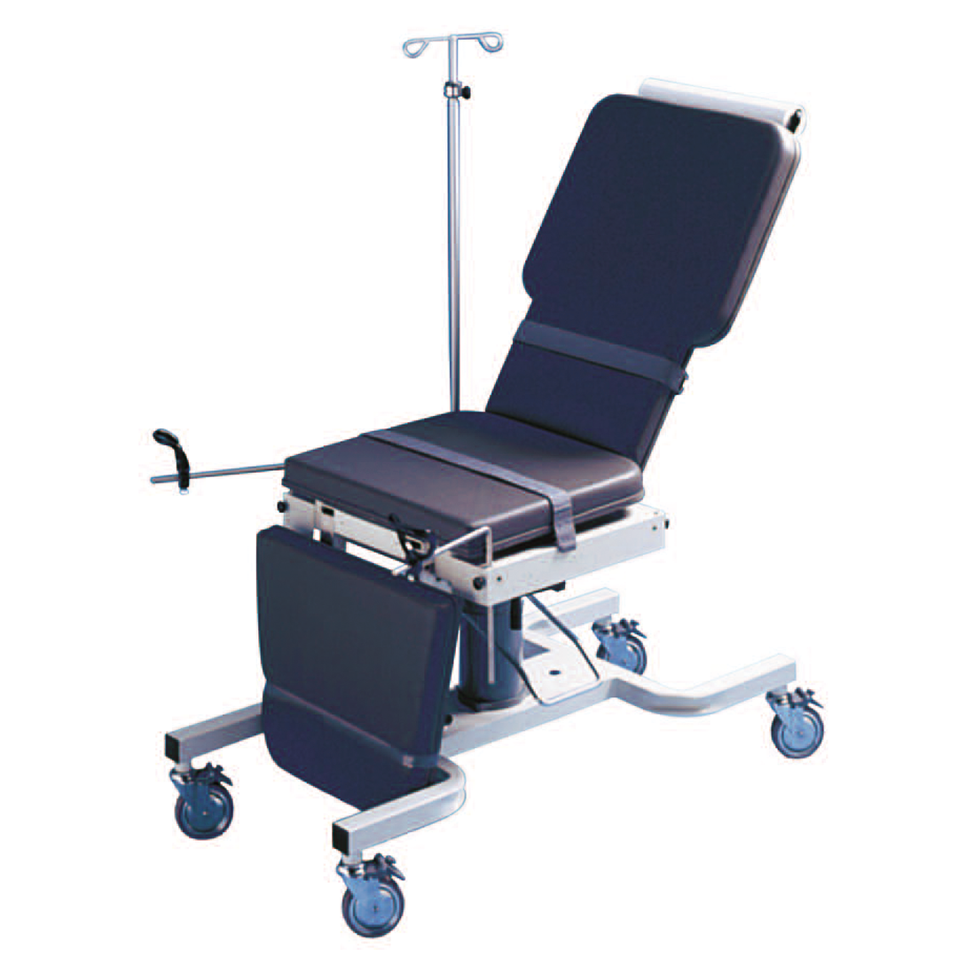 The Biodex 056 Series Ultrasound Table is equipped with 5” (13 cm) locking casters for easy mobility. Patient restraints include two body straps and a powder-coated finish. This manual positioning table offers flexibility with adjustable height, Trendelenburg, and Fowler Back settings, providing optimal comfort for both patients and medical professionals. With a patient load capacity of 350 lb (159 kg), this ultrasound table combines functionality, durability, and user-friendly design for an easier clinical experience. The drop-down foot section accommodates chair positioning or stirrup use, enhancing the table’s adaptability. Additionally, an optional IV Pole attachment is available for added convenience.