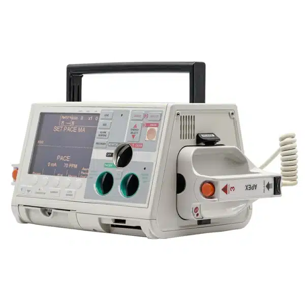 El Zoll Serie M es un desfibrilador compacto que integra desfibrilación, marcapasos no invasivo, monitoreo del paciente, impresión y registro en un solo dispositivo. Está diseñado para su uso en situaciones de reanimación, tanto en hospitales como en servicios de emergencia médica (EMS). Puede configurarse en modos manual, asesorado o semiautomático. Es compatible con los electrodos CPR-D-pads para utilizar Real CPR Help, que brinda retroalimentación en tiempo real durante las compresiones. Además, permite registrar datos en tarjetas PCMCIA para su análisis y archivo.