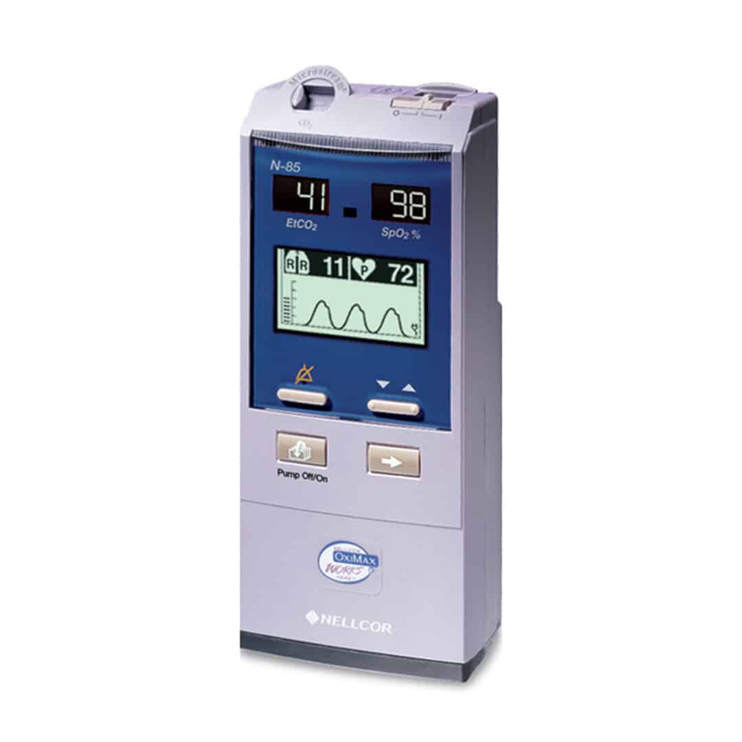 The Nellcor N-85 hand-held capnograph/pulse oximeter with OxiMax technology combines two highly advanced technologies in a convenient, portable device. Microstream®* capnography helps ensure accurate end-tidal CO measurements and crisp waveforms, extensive selection of Microstream breath- sampling accessories allows you to monitor intubated and nonintubated patients—including those receiving supplemental oxygen.