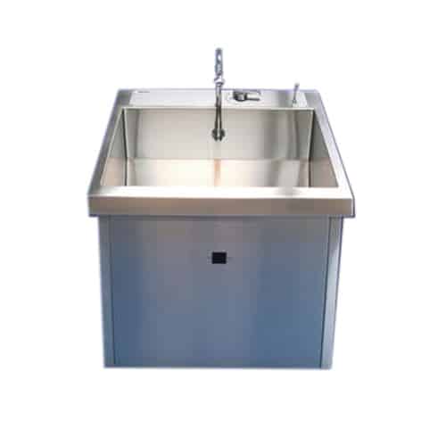 - Infrared sinks are equipped with a 24 volt plug in transformer Adjustable thermostatic controlled pressure regulating mixing valve, one per station mounted under sink