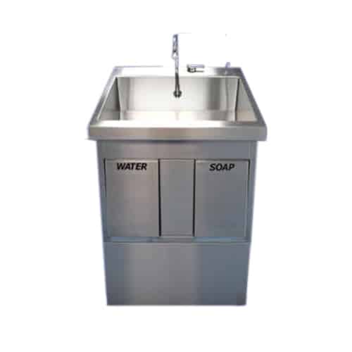 - Adjustable thermostatic controlled pressure regulating mixing valve, one per station mounted under sink