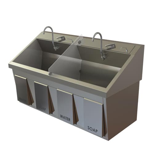 - Infrared sinks are equipped with a 24 volt plug in transformer Adjustable thermostatic controlled pressure regulating mixing valve, one per station mounted under sink
