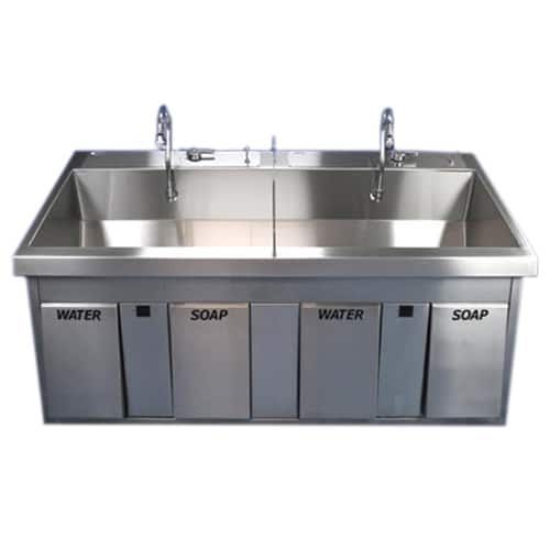 - Infrared sinks are equipped with a 24 volt plug in transformer Adjustable thermostatic controlled pressure regulating mixing valve, one per station mounted under sink