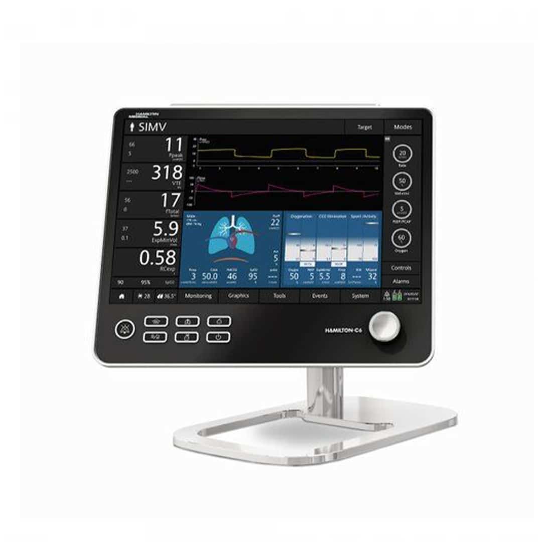 El ventilador Hamilton C-6 combina tecnología de vanguardia con una facilidad de uso excepcional y está diseñado para satisfacer las necesidades de pacientes críticamente enfermos en una amplia variedad de entornos clínicos. Su diseño compacto y sus capacidades de alto rendimiento lo hacen ideal para unidades de cuidados intensivos (UCI), quirófanos y entornos de emergencia. El C-6 ofrece modos de ventilación inteligentes que garantizan un soporte óptimo, adaptado a las necesidades individuales de cada paciente. Sus avanzados sistemas de monitoreo y alarmas proporcionan seguridad y eficiencia a los profesionales de la salud.