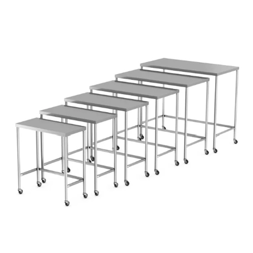 The Axia Nesting Table is a stainless steel surgical table. The Nesting table is built with a fully welded construction. The table top is 304 series stainless steel. The table legs and U brace stabilize the table so that it is easy to move. It comes with 2-inch, non-locking, swivel casters.