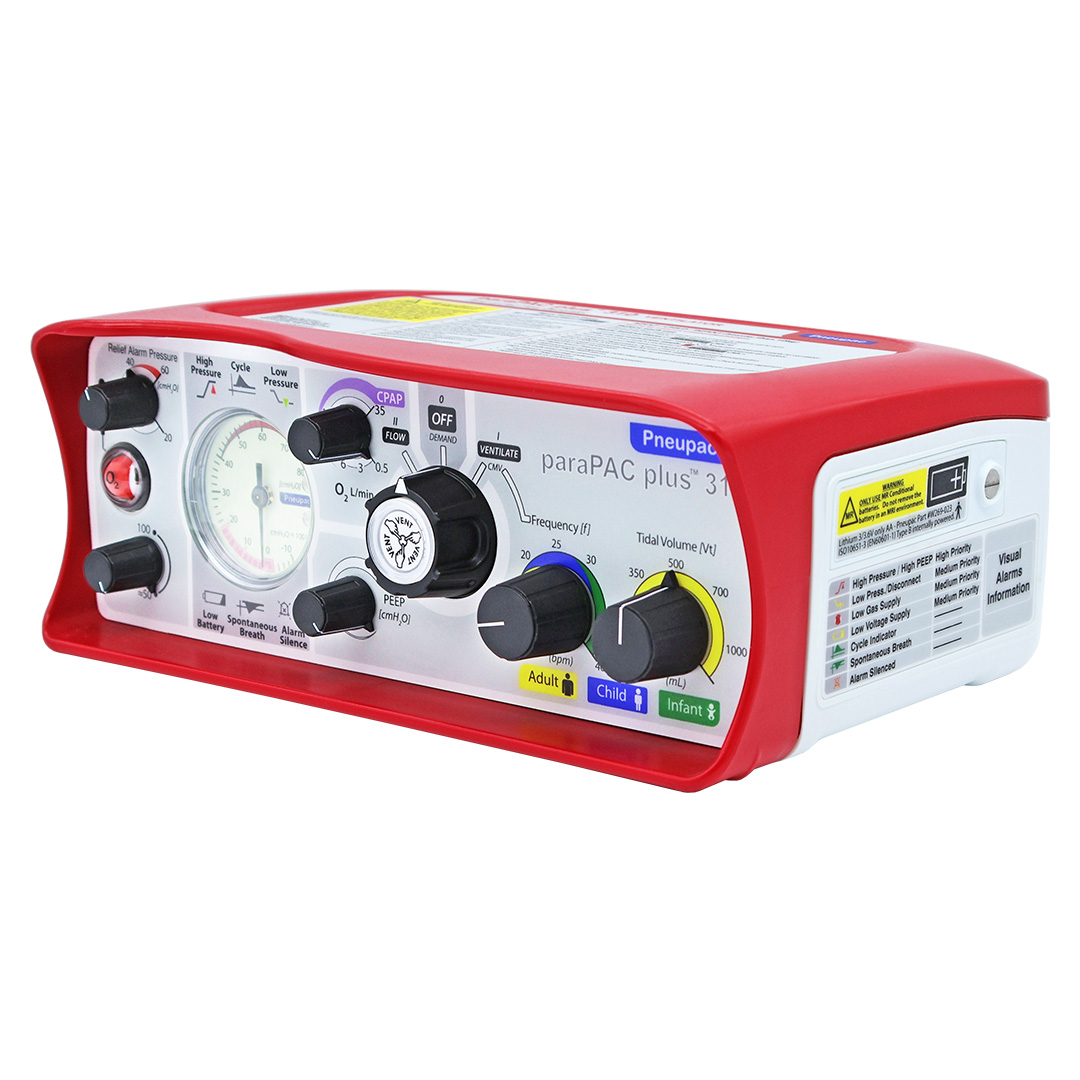 The ICU Medical paraPAC plus is a versatile ventilator that offers oxygen therapy, CPAP, demand oxygen and mechanical ventilation from a single lightweight unit. The paraPAC plus is designed to withstand demanding environments such as emergency, ambulance, aircraft, hospital and is even MRI compatible up to 3 Tesla. This ventilator can be used on adults, children and infants during both emergency or controlled ventilation giving more flexibility for intra-hospital transport. The paraPAC Plus ensures optimal patient care with built-in safety features and easy-to-use functionality.