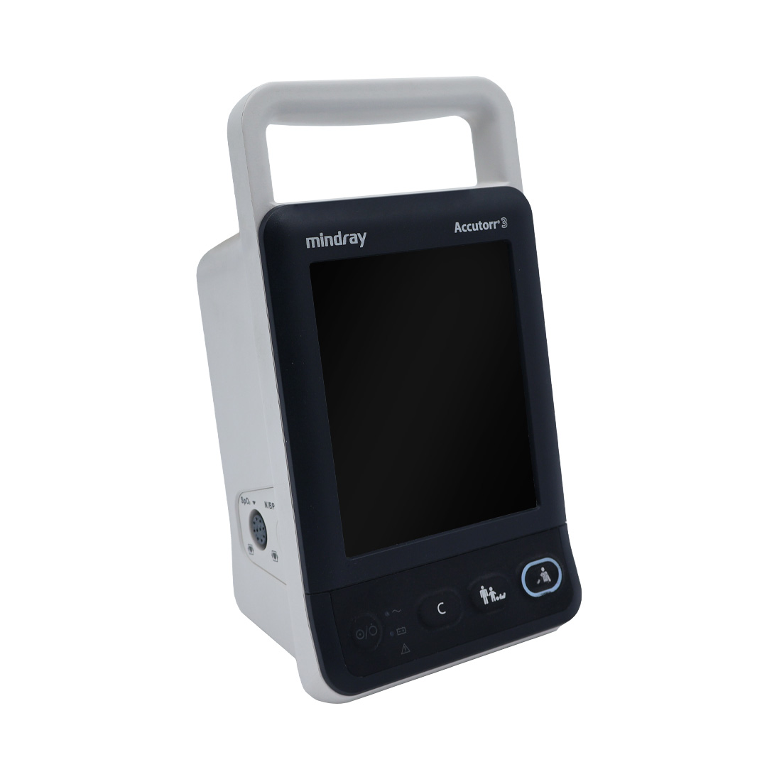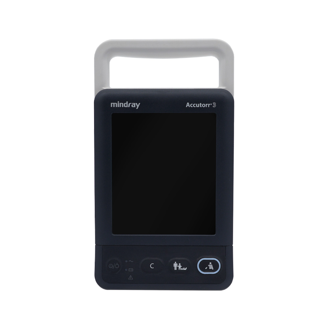 The Mindray Accutorr 3 is a compact, lightweight vital signs monitor designed for easy transport and intuitive operation. It is ideal for spot-check monitoring of key physiological parameters, pulse oximetry (SpO2), pulse rate, non-invasive blood pressure (NIBP), and temperature; it serves pediatric, adult, and neonatal patients. With standard RS-232 communication, the Accutorr 3 easily connects to EMR systems, and all functions are accessible via a convenient button touchpad.